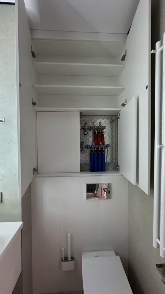 Технологическая часть выводит проект на уровень 5*: система «умный дом» управляет светом, климатом, сценами и безопасностью. Защита от протечек перекрывает воду мгновенно при первых признаках аварии. Электрика выполнена по премиальным стандартам: распределение нагрузки, качественные линии, отсутствие слабых точек.