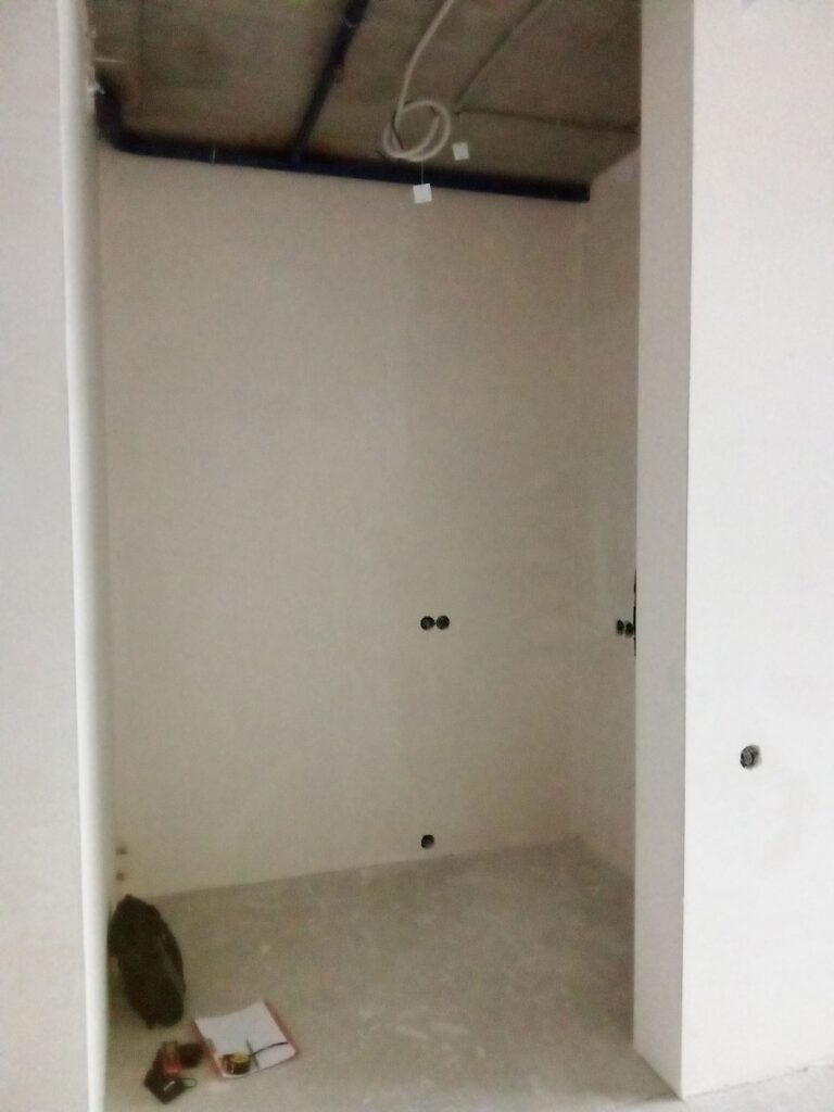 Открытая студия в бетоне: кухня/гостиная/спальня 26 м², отдельная гардеробная 2,76 м², санузел 3,7 м² и коридор. Типичная планировка новостройки без зонирования, где каждый метр требовал продуманного подхода. Пустое пространство с потенциалом, но нуждающееся в концепции, которая превратит его в функциональное жильё премиум-класса — готовое для аренды или личного проживания в самом сердце столицы.