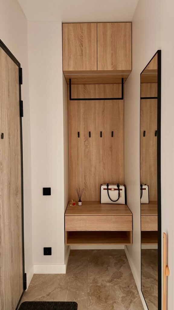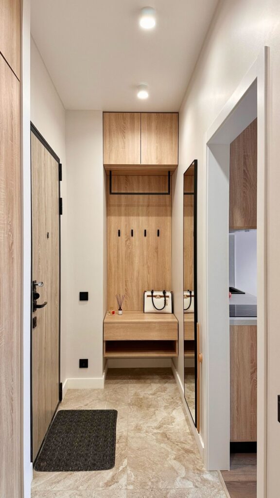 Хранение под размер — стратегически продуманная система: ниши, шкафы, скрытые зоны. Квартира выглядит аккуратно и упорядоченно.