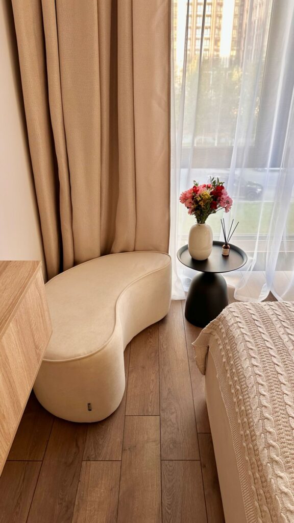 Спальня 11 м² — приватная зона с оптимизированным хранением, где квартира выглядит аккуратно и упорядоченно — ключевой критерий выбора для арендаторов.