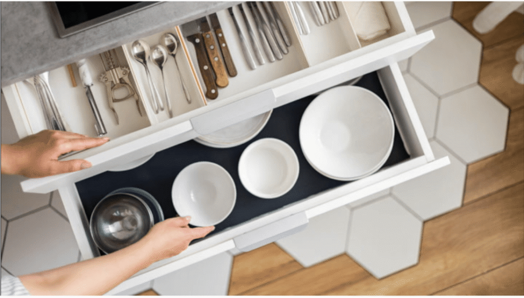 Как только ваши шкафы, полки и ящики опустеют, тщательно очистите их, вытирая пролитую жидкость и крошки, протирая полки и, при необходимости, заменяя вкладыши полок и ящиков.