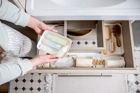 Если вы поместите все, что вам нужно для утренней рутины, в одно место, вам будет очень просто собраться утром — независимо от того, выберете ли вы корзину, коробку или просто определенную полку. Это сократит количество времени, которое вы тратите на поиск солнцезащитного крема или жидкости для полоскания рта.